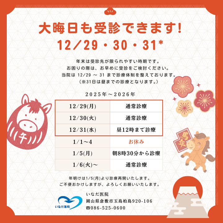 外来窓口またはお電話(086-525-0600)にて、予約受付中です!